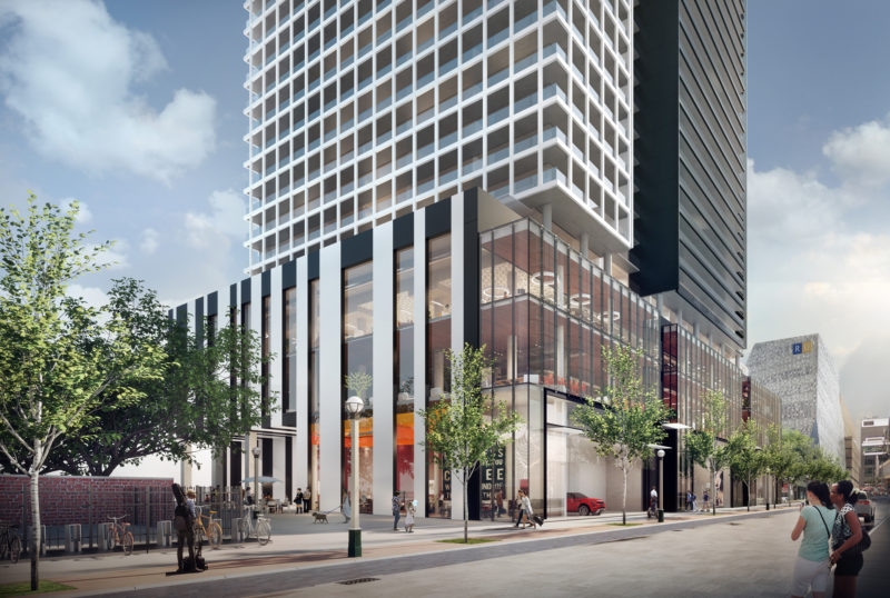 Panda Condos is a new condo development by Lifetime Developments currently in pre-construction at 20 Edward Street, Toronto, Ontario M5G 1C9, Canada. It’s a residential development proposal on a site which was previously occupied by a retail store known as the World’s Biggest Book Store that operated from 1980 to March 30th, 2014 and was demolished in November of that year. The former plan was to redevelop the land into a row of restaurants with 40 foot ceilings designed by Turner Fleisher Architects but plans now are for the redevelopment of this site into a mixed-use 35 storey (122.3 metres in height) building designed by architectsAlliance. This proposal also includes a 3-storey (18.5 metres in height) commercial base. Zen King West is another project launching in the Downtown Toronto area ahead of Panda Condos which is the most hyped project of Toronto.