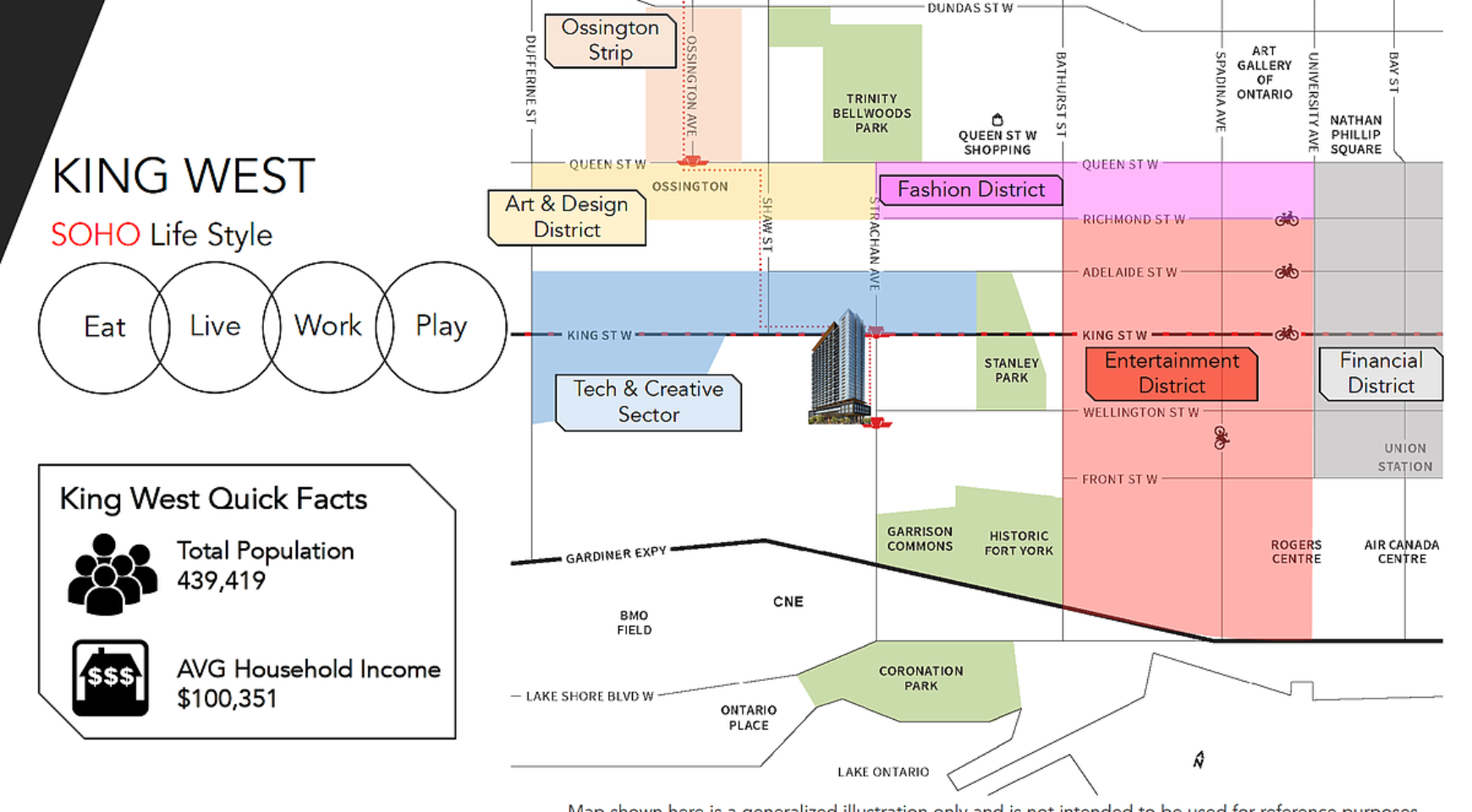 Zen King West Condos is a new per-construction Condo project located at 19 Western Battery Road In Toronto. The Major Intersection are King Street West and Strachan Ave and developed by CentreCourt Developments. Zen Condos is 32 storeys tall located in the King West Village coined as SOHO District of Toronto – truly the most affluent area in the city, with a tentative Occupancy date is Q4 2020 and will feature 481 residential units.